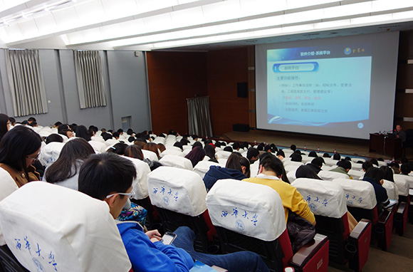 儀式結(jié)束后,周和生董事長(zhǎng)為建筑與土木工程學(xué)院學(xué)生及相關(guān)部門工作人員作了題為“建設(shè)項(xiàng)目全過程投資管理及審計(jì)系統(tǒng)介紹”的學(xué)術(shù)報(bào)告。