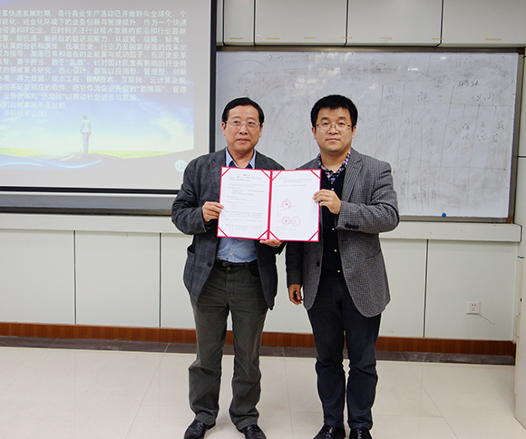 2014年11月14日下午,公司董事長(zhǎng)周和生應(yīng)重慶大學(xué)邀請(qǐng),為重慶大學(xué)建設(shè)管理與房地產(chǎn)學(xué)院學(xué)生及相關(guān)部門(mén)工作人員作了題為“建設(shè)項(xiàng)目全過(guò)程投資管理及審計(jì)系統(tǒng)介紹”的學(xué)術(shù)報(bào)告。并向?qū)W院捐贈(zèng)“建設(shè)項(xiàng)目全過(guò)程投資管理與審計(jì)系統(tǒng)”軟件,大力支持學(xué)校教學(xué)工作。竹隰生院長(zhǎng)代表學(xué)院出席此次捐贈(zèng)儀式。