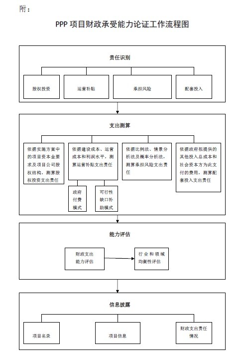 第六條 各級財政部門(或PPP中心)負責組織開展行政區域內PPP項目財政承受能力論證工作。省級財政部門負責匯總統計行政區域內的全部PPP項目財政支出責任,對財政預算編制、執行情況實施監督管理。